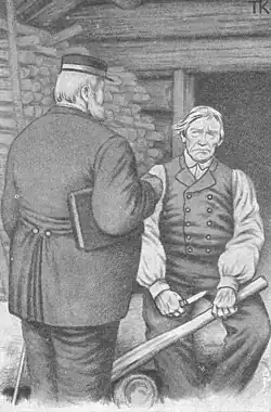 The bailiff finally gets angry with him and shouts, "Go to the devil, fool that you are!"