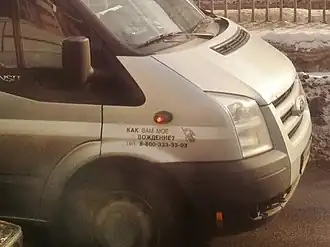 A "how's my driving" sign (or "how is my driving" or similar) is a decal posted or painted on a back of a fleet vehicle or other vehicle operated by an employee driver. The phone number, website address, and other identifying information are typically included on the sticker so that members of the public can call and report on the actions of the driver of the vehicle. Depending on the company, the phone number or website is monitored by the vehicle's owner or by a third-party company.[1]
