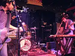 The group left Teenbeat in mid-2006 to sign to Absolutely Kosher,[10] although Teenbeat did issue a long-delayed split EP with Bloodthirsty Butchers and a retrospective DVD of video clips in 2007. Subsequent to signing with Absolutely Kosher the band's recordings received distribution in central Europe through BB*Island, and the band has since toured Germany and its surrounding nations three times.[11] After the release of Xs on Your Eyes in 2008 the group did not tour the US to any great extent, but concentrated their touring efforts on Asia and continental Europe. In late 2009 the band released the Japan-only EP Thrown into the Fire, and also announced that they had provided the soundtrack for the multiplayer online game Code of Everand,[12] which Chris Deaner had worked on as a lead programmer.[13]
