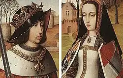 After the death of Queen Isabella I, which occurred on November 26, 1504, her widower Ferdinand II convenes the Cortes de Toro on behalf of his absent daughter, the titular queen Joanna "The Mad". 83 laws are agreed upon on March 7, 1505, regulating the succession and recognizing the King of Aragon Ferdinand II as governor of the Kingdom of Castile following the will of Queen Isabella.[16] The grandees of Castile conjured against Ferdinand II, knowing that Isabella's will ordered that only in the event of Joanna's impediment should Ferdinand be governor.[17]