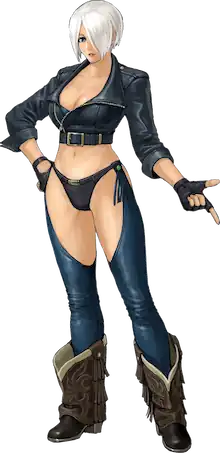 Ángel (Japanese: エンゼル, Hepburn: Enzeru) is a character from The King of Fighters (KOF) series by SNK. She is portrayed as a ditzy yet deadly Mexican female fighter who is introduced as an agent from the organization NESTS hosting the title tournament from the video game The King of Fighters 2001. She also appears in the following games: The King of Fighters 2002, The King of Fighters XIV, and The King of Fighters XV with other team members as she starts a new life free from NESTS. She also appears in the PlayStation 2 version of The King of Fighters Neowave.