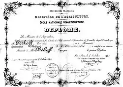 It was founded in 1874, on initiative of Pierre Joigneaux and the first Director was Auguste Hardy, to promote French agricultural education (Under the Act of 16 Dec. 1873). The school was located in the “Potager du Roi” (the King's kitchen garden) in Versailles where the former Institut National Agronomique had been established in October 1848 at the end of the Second Republic.[1] At first it was named Ecole Nationale d'Horticulture, being changed to Ecole Nationale Supérieur d'Horticulture (ENSH) in 1961.