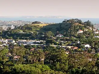 Located in the Remuera suburb, to the east of the Newmarket commercial suburb, it has been extensively modified by human use, first by Māori for use as a pā and later by use as quarry and pasture land before finally having a water reservoir installed in its cone to supply the surrounding area. An additional, partially buried, water reservoir was built on the low southern side of the mountain in 1955. English oaks and pōhutukawa are the most common trees on the hill.[2]