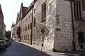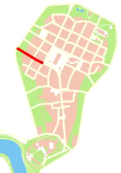 To the west, the street heads to a former Jewish quarter, hence its former name, Żydowska Street (Ulica Żydowska, lit. Jewish Street).[2] Historically, the street saw the location of a synagogue, cemetery and a Jewish bath house until the fifteenth-century, when the Jewish population was moved to the north to the present location of Szczepański Square.[3] The etymology of the street derives from the presence of the Church of St. Anne. The street features several university-related buildings, formerly housing colleges, dormitories and a library.[4]