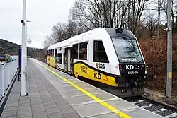 Since 10 December 2023, during the 2023/2024 period, passenger traffic has been conducted from the Świeradów-Zdrój stop to Gryfów Śląski via Mirsk, with some services extended to Jelenia Góra, Węgliniec, and Görlitz.[38] These connections are operated by Koleje Dolnośląskie under line D62.[38]