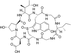 ε-Amanitin (epsilon-Amanitin) is a cyclic peptide. It is an amatoxin, all of which are found in several members of the mushroom genus Amanita. The oral LD50 of ε-amanitin is approximately 0.1 mg/kg.