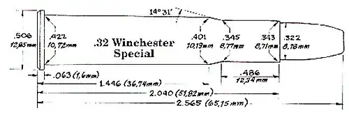 2. ^ ".32 Winchester Special (rifle) data Archived 2007-11-11 at the Wayback Machine" from Hodgdon