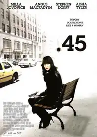 .45 is a 2006 American independent thriller film written and directed by Gary Lennon and starring Milla Jovovich, Angus Macfadyen, Aisha Tyler, Stephen Dorff, and Sarah Strange.[1] .45 was released theatrically in Greece, Taiwan, Singapore, Japan, South Korea, and Mexico.