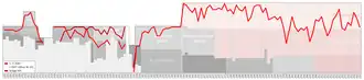 In 2012 the board hired Jörg Jakobs as director of football, who then got promoted in 2014 to sporting director, chief scout and director of the academy.[11][12] In January 2013, Alexander Wehrle joined as managing director of Köln. Wehrle was working as assistant for VfB Stuttgart president Erwin Staudt, especially for rebuilding the stadium.[13] In summer 2013, Peter Stöger and Manfred Schmid were hired as coaching team, and Jörg Schmadtke as general manager. In 2013–14, Köln finished first in the 2. Bundesliga and earned promotion to the top division. It was followed by a 12th place 2014–15, ninth in 2015–16, and a fifth place in 2016–17, which saw them qualify for the 2017–18 UEFA Europa League, their first European campaign in 25 years. After restructuring and repaying debt, equity turned from €11m negative to €20m positive. The turnover increased from €56m in 2012–13 to more than €120m in 2016–17.[10][14][15]