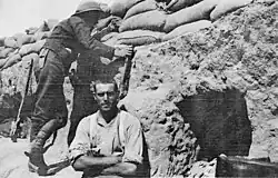 The regiment returned to garrison duty, and supplied a number of officers and men to the various departments and staffs that were being set up:[22] among those who left was Capt Arnold Ward, Member of Parliament for Watford, who was appointed to command a convalescent camp in Cyprus. On 9 August 1915 1/1st Herts Yeomanry received a warning order to prepare to sail to Gallipoli as reinforcements for the bogged-down Dardanelles Campaign. Together with the Westminster Dragoons in the former Yeomanry Mounted Brigade (redesignated as the 5th Mounted Brigade) they were to be attached to the 2nd Mounted Division – all operating dismounted in the infantry role. Each regiment left the equivalent of a squadron HQ and two Troops to look after the horses, and on 14 August the 1/1st Herts Yeomanry embarked on HMS Knight Templar at Alexandria. It arrived on 17 August at Lemnos, where it left behind a further party at the base at Mudros with the regimental transport It then trans-shipped to the SS Queen Victoria, which ferried the regiment to Suvla Bay, where a fresh landing had been made on 6 August. The regiment landed after dark and spent the next two days building dugouts and roads. On 21 August the 2nd Mtd Division was in reserve for the Battle of Scimitar Hill. The Yeomanry moved out of their bivouacs at Lala Baba at 15.30 towards Chocolate Hill, expecting then to pass through the attacking 29th Division on Scimitar Hill to secure the final objective. However, after two gallant attempts to take Scimitar Hill, 29th Division's attack had died out by 17.00 and the Yeomanry came under heavy converging fire as they crossed the salt lake and approached Chocolate Hill. The Herts Yeomanry lost their CO, Lt-Col Gurney Sheppard, who was killed, and about 40 ORs, of whom 11 died. 5th Mounted Bde stayed in reserve on Chocolate Hill while the rest of 2nd Mtd Division made another disastrous attack on Scimitar Hill. After this had failed, the division was withdrawn after dark to Lala Baba. Major Halsey took over temporary command of 1/1st Herts Yeomanry until Maj Ted Sheppard could be summoned from Egypt. After a day's rest the regiment went up the following night to take over defence of the trenches forward of Chocolate Hill, where it remained until 28 August.[3][9][15][21][23][24]