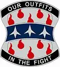 • Distinctive unit insignia: The dark blue, the color traditionally used by the Infantry unit, denotes the Presidential Unit Citation awarded to the unit. The arched band refers to the unit's World War II campaign in the Battle of the Bulge. The caltrops represent the defensive success by the Allies to protect Bastogne, Belgium from the German Army. The field of Gutte de Sang symbolizes the Battle of Ardennes, Siege of Bastogne, one of the bloodiest conflicts during World War II.