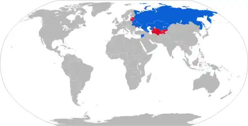In Russian Army service, the 2A65 is deployed with the 9th Artillery Brigade in Luga, the 288th Artillery Brigade in Inzhenernyy, and the 291st Artillery Brigade in Maykop, as well as being stored in Perm and near Novgorod.[4] It is also in service with other units in other Russian military districts, including the 381st Guards "Warsaw" Artillery Regiment of the 150th Motor Rifle Division. The total number of active 2A65 howitzers in Russian service is estimated at 370.