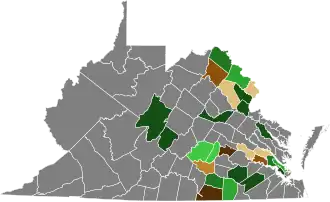 | Powhatan | 82.05% | 128 | 17.95% | 28 | 156 |