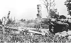 The 17th SS Panzergrenadier Division "Götz von Berlichingen" (German: 17. SS-Panzergrenadier-Division "Götz von Berlichingen")[1] was a German Waffen-SS division that saw action on the Western Front during World War II. It was formed in October 1943 from Germans, Volksdeutsche, Romanians, and Belgians, and included a cadre from the 10th SS Panzer Division Frundsberg. The division was sent into battle, destroyed, and rebuilt, before surrendering to U.S. forces near Achen Lake in May 1945. It was first stationed in southwest France before being sent to Normandy in June 1944, where it launched a counterattack against the U.S. 82nd and 101st Airborne Divisions. The 17th slowed down their advance but was practically destroyed as of July 1944. The division was rebuilt in eastern France and took part in the Battle of Metz, where it took heavy losses, and after that its remnants fought against the Western Allied invasion of Germany.[2]