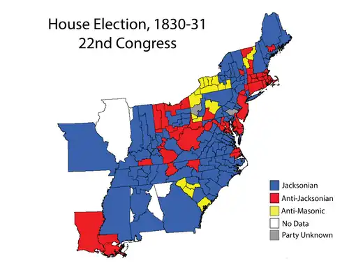 Elections occurred in the middle of Democratic President Andrew Jackson's first term, during the Second Party System. Members of the 22nd United States Congress were chosen in this election. The election saw Jackson's Democrats retain control of both chambers of Congress over the National Republicans and other members of the anti-Jackson faction, while the Nullifier Party won seats in Congress for the first time.