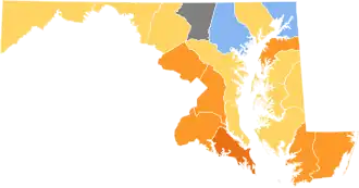 | Baltimore (City and County) | 6699 | 44.89% | 8222 | 55.11% | -1523 | -10.22% | 14,921 |