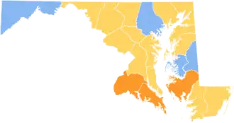 | Baltimore (City and County) | 13001 | 48.61% | 13664 | 51.09% | 79 | 0.30% | -742 | -2.18% | 26744 |