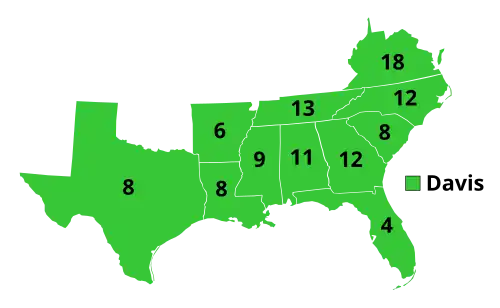 ![]() Presidential election results map. Green denotes states won by Davis/Stephens. Numbers indicate the number of electoral votes allotted to each state. | |||||||||||||||||||||||||||||