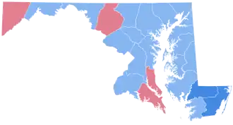 In this election, Maryland voted 9.09% more Democratic than the nation at-large.[4]