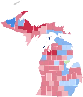 | Saginaw | 6,723 | 41.95% | 8,923 | 55.68% | 325 | 2.03% | 54 | 0.34% | -2,200 | -13.73% | 16,025 |
