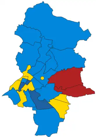| Party | Votes | Seats | Full Council | |||||||