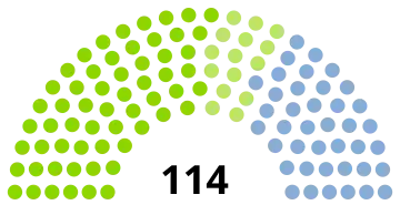 All 114 seats in the Storting 57 seats needed for a majority | |||||||||||||||||||||||||||||||||||||