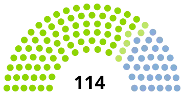 Last election 52.68%, 79 seats 46.75%, 25 seats 10 seats with H