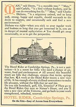 - ^ Crisman, Sharon (2003). Around Cambridge Springs. Arcadia Publishing. pp. 30–35. ISBN 978-0738513270.