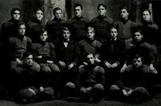The team photo consists of 14 players—likely all of the team's lettermen—plus coach Edward Herr and the student team manager.[20]