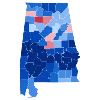 With 70.88% of the popular vote, Alabama would prove to be Bryan's fifth strongest state in the 1908 presidential election after South Carolina, Mississippi, Louisiana and Texas.[1]