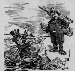 The American Party, an anti-Mormonism party formed in September 1904 from angry supporters of Thomas Kerns after he was ousted as a senator due to Reed Smoot,[12] nominated judge John A. Street. Their main issues centered on removing church influence from state politics, with their 1908 platform stating "In short, we condemn the church commercialism which crushes out individual effort and deprives men of their rights to a free field trade." Their platform mainly criticized Republicans, and pointed to their inaction on allegations of people practicing polygamy.[13]
