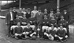 The 1910–11 Manchester United team and staff with Football League First Division trophy