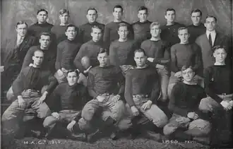 The 1910 Michigan Agricultural Aggies football team represented Michigan Agricultural College (MAC) as an independent during the 1910 college football season. In their eighth year under head coach Chester Brewer, the Aggies compiled a 6–1 record and outscored their opponents 168 to 8. Ion Cortright was the team captain.[1] The season was regarded as the best in Michigan Agricultural football history up to that point.[2]