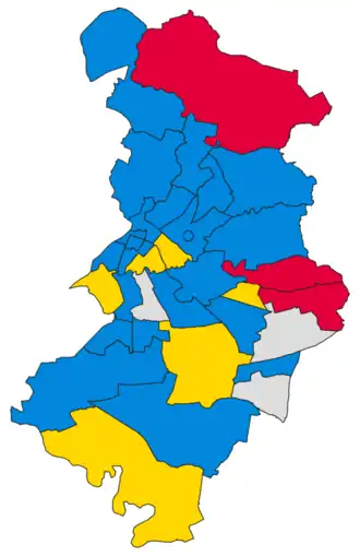 | Conservative Party | 20,685 (49.2%) | 23 (65.7%) | 23 / 35