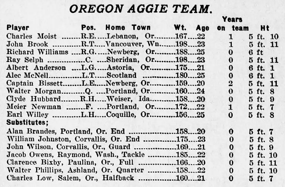 ^ "Winged M Victor Over Aggie Team" . The Sunday Oregonian . Portland, Oregon . October 1, 1916. p. 4, section 2. Retrieved December 2, 2024 – via Newspapers.com .