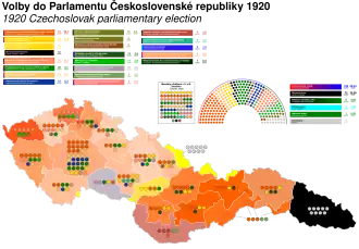 The Czechoslovak Social Democratic Workers' Party (ČSDSD) emerged as the largest party in the 1920 election, with 26% of the vote and 74 seats in the Chamber of Deputies and 28% of the vote and 41 seats in the Senate and 41 senators elected.[3] Amongst the Czech voters, the 1920 election outcome was marked by remarkable stability compared to the 1911 election.[11] The gap between Czech socialist and bourgeois parties had only moved by 0.4% compared to the 1911 result.[11]