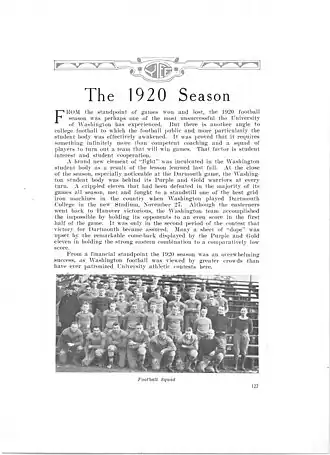 - ^ "1920 Football Schedule". The University of Washington Athletics. Retrieved December 2, 2024.
