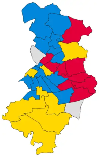 | Labour Party | 43,693 (34.6%) | 9 (25.7%) | 9 / 35