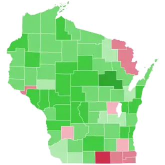 - ^ Because La Follette carried Wisconsin, and Coolidge was the top major party candidate in the state and in every county, all margins given are La Follette vote minus Coolidge vote and all percentage margins La Follette percentage minus Coolidge percentage.