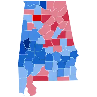 | Cullman | 1,574 | 34.72% | 2,959 | 65.28% | 0 | 0.00% | -1,385 | -30.56% | 4,533 |
