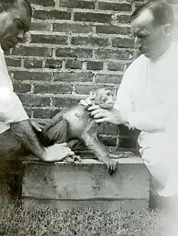 In early January 1930, an outbreak of "mysterious pneumonias" in the United States came to media attention when cases in three members of one family were traced to the previous Christmas importation of parrots from South America.[20][21] 10 days before Christmas, Simon Martin, secretary of the Chamber of Commerce in Annapolis, Maryland, bought a parrot in Baltimore for his wife, who subsequently, along with their daughter and son-in-law, became seriously ill.[22][23] Their new parrot's feathers had become dirty and ruffled by Christmas Eve, and on Christmas Day it died. The wife of the family physician made a link to a newspaper article about "parrot fever" in Buenos Aires. In consequence, Martin's physician sent a telegram to the United States Public Health Service (PHS) in Washington DC, requesting for advice on parrot fever. The story came to the attention of Surgeon General Hugh S. Cumming, who received similar messages from Baltimore, New York, Ohio and California. The task of solving the cause of parrot fever was signposted to George W. McCoy, the director of PHS's Hygienic Laboratory and a renowned bacteriologist who had discovered tularaemia, and his deputy, Charlie Armstrong, neither of whom had ever heard of parrot fever.[2]