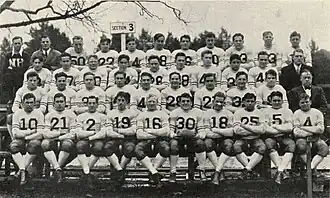 ![]() The 1932 squad was the first New Hampshire Wildcats football team to appear in The Granite wearing numbers on the front of their uniforms. | |