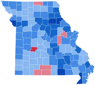 This is the last election in which Cedar County, Dade County, Miller County, and Wright County have voted for a Democratic presidential nominee, and the only election since the Civil War when Unionist Ozark Camden County, Christian County and Stone County did so.[5][6]