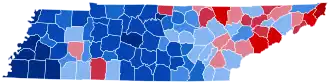 For over a century after the Civil War, Tennessee was divided according to political loyalties established in that war. Unionist regions covering almost all of East Tennessee, Kentucky Pennyroyal-allied Macon County, and the five West Tennessee Highland Rim counties of Carroll, Henderson, McNairy, Hardin and Wayne[3] voted Republican – generally by landslide margins – as they saw the Democratic Party as the "war party" who had forced them into a war they did not wish to fight.[4] Contrariwise, the rest of Middle and West Tennessee who had supported and driven the state's secession was equally fiercely Democratic as it associated the Republicans with Reconstruction.[5] After the disfranchisement of the state's African-American population by a poll tax was largely complete in the 1890s,[6] the Democratic Party was certain of winning statewide elections if united,[7] although unlike the Deep South Republicans would almost always gain thirty to forty percent of the statewide vote from mountain and Highland Rim support.