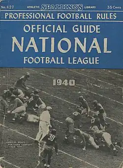 5. ^ Official Rules of the National Football League, 1940, in Carl L. Storck (ed.), Official Guide of the National Football League, 1940. New York: American Sports Publishing Co., 1940; rules p. 20.