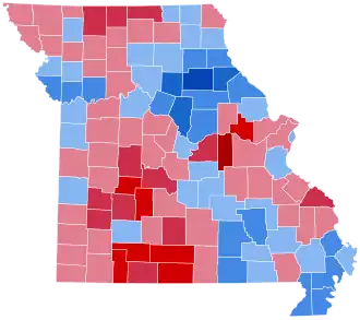 | Laclede | 3,323 | 40.14% | 4,941 | 59.69% | 5 | 0.06% | 9 | 0.11% | 0 | 0.00% | -1,618 | -19.55% | 8,278 |