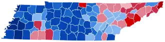 For over a century after the Civil War, Tennessee was divided according to political loyalties established in that war. Unionist regions covering almost all of East Tennessee, Kentucky Pennyroyal-allied Macon County, and the five West Tennessee Highland Rim counties of Carroll, Henderson, McNairy, Hardin and Wayne[3] voted Republican – generally by landslide margins – as they saw the Democratic Party as the "war party" who had forced them into a war they did not wish to fight.[4] Contrariwise, the rest of Middle and West Tennessee who had supported and driven the state's secession was equally fiercely Democratic as it associated the Republicans with Reconstruction.[5] After the disfranchisement of the state's African-American population by a poll tax was largely complete in the 1890s,[6] the Democratic Party was certain of winning statewide elections if united,[7] although unlike the Deep South Republicans would almost always gain thirty to forty percent of the statewide vote from mountain and Highland Rim support.
