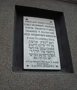 The victims of the "Black Friday" are also commemorated by a plaque on the wall of the building at Suraska 1 Street. There is an inscription on it in Polish and Hebrew, which states, however not particularly precisely:[79]