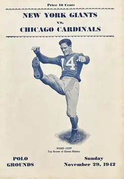 Program for the November 29 game against the Chicago Cardinals. Featured on the cover is kicker Ward Cuff.