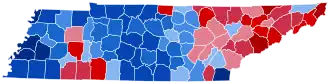 For over a century after the Civil War, Tennessee was divided according to political loyalties established in that war. Unionist regions covering almost all of East Tennessee, Kentucky Pennyroyal-allied Macon County, and the five West Tennessee Highland Rim counties of Carroll, Henderson, McNairy, Hardin and Wayne[3] voted Republican – generally by landslide margins – as they saw the Democratic Party as the "war party" who had forced them into a war they did not wish to fight.[4] Contrariwise, the rest of Middle and West Tennessee who had supported and driven the state's secession was equally fiercely Democratic as it associated the Republicans with Reconstruction.[5] After the disfranchisement of the state's African-American population by a poll tax was largely complete in the 1890s,[6] the Democratic Party was certain of winning statewide elections if united,[7] although unlike the Deep South Republicans would almost always gain thirty to forty percent of the statewide vote from mountain and Highland Rim support.